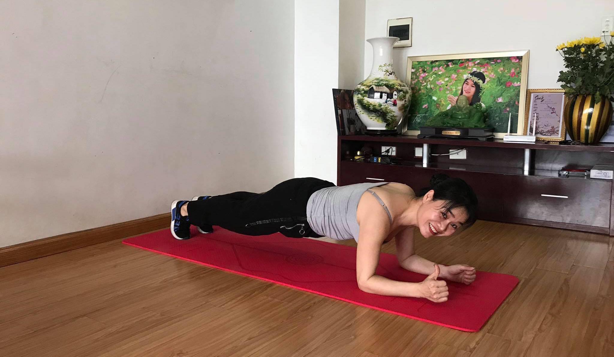 Các group làm đẹp của chị em trước giờ chia sẻ về kem và mặt nạ dưỡng da thì nay phần lớn các hình ảnh tập trung vào việc tập luyện để vừa khỏe vừa giữ được dáng đẹp. Plank là một trong những tư thế tập luyện phổ biến nhất. Ảnh: Chị Cúc Họa Mi – admin một group làm đẹp 9194 Hà Nội.