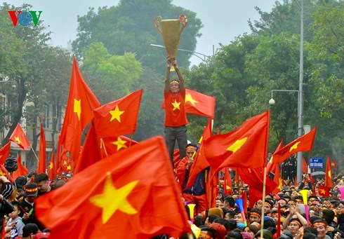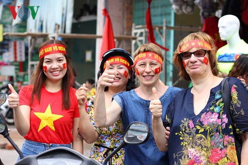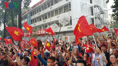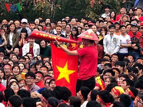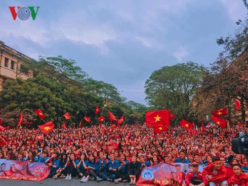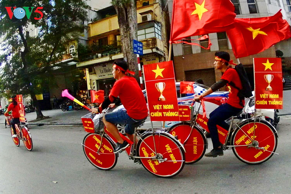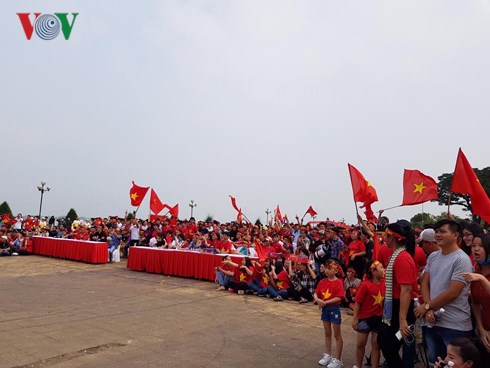| Trước giờ trận đấu diễn ra, đã có nhiều người hâm mộ cổ vũ cho đội tuyển U23 Việt Nam trên những tuyến phố chính. (Đức Anh/VOV5) |