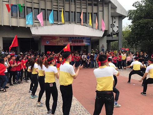 | Tình yêu bóng đá và U23 Việt Nam của các bạn sinh viên Đại học Kinh tế Quốc dân Hà Nội. (Ảnh: Ngô Yến). |