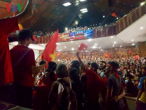| Không khí cổ vũ cuồng nhiệt của sinh viên tại Hội trường Đại học Cần Thơ. (Ảnh: Trương Tùng). |