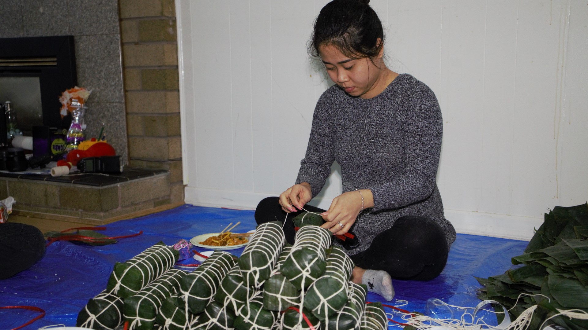 Các thành viên tham gia gói bánh đều là những người gốc Việt quen biết với nhau từ lâu.