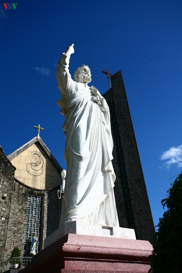 Tượng thánh Phêro phía trước, bên trái nhà thờ (theo hướng nhìn từ ngoài vào).