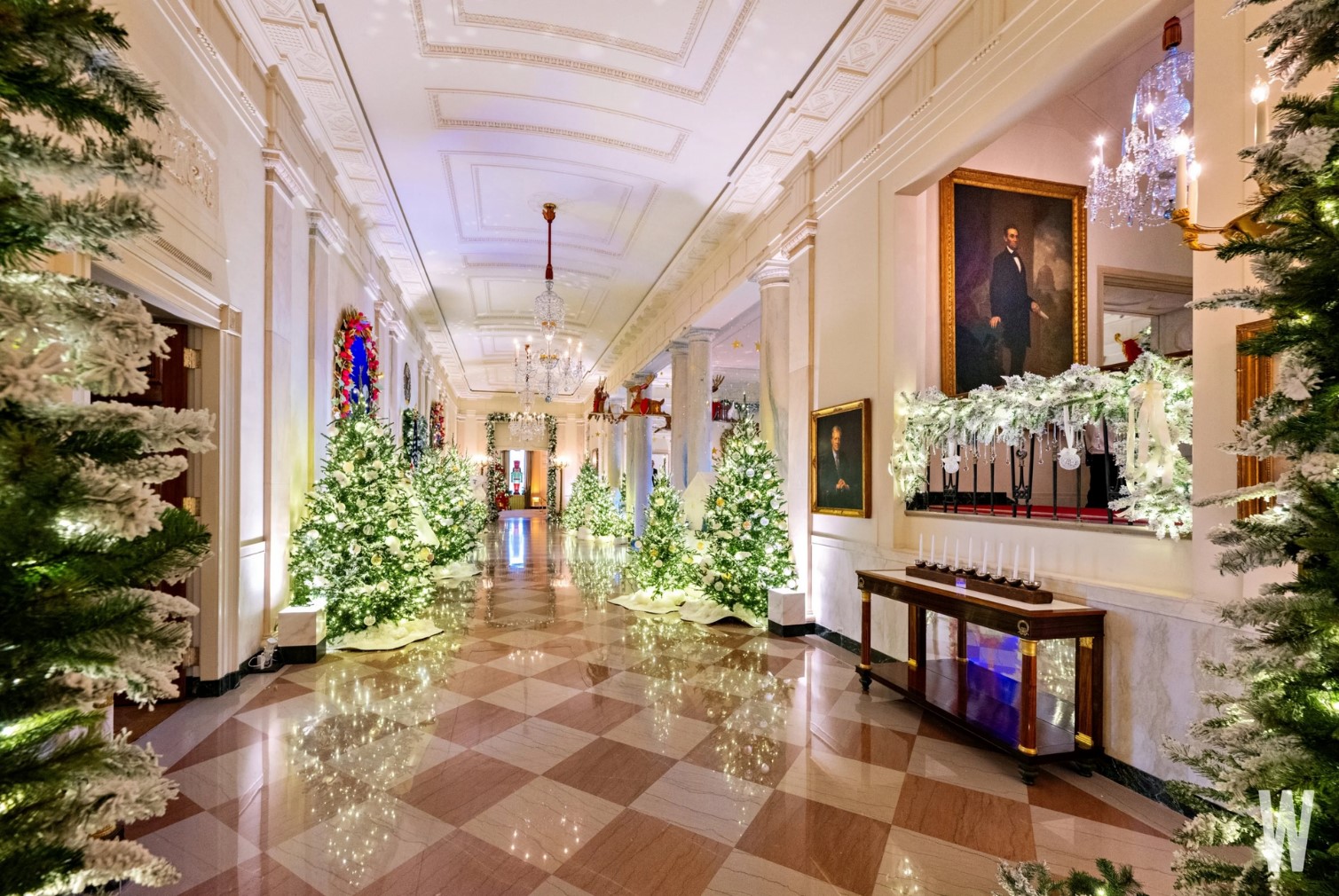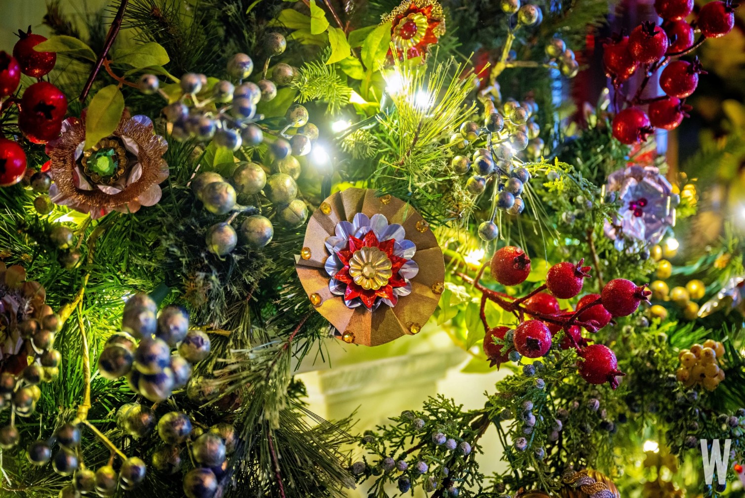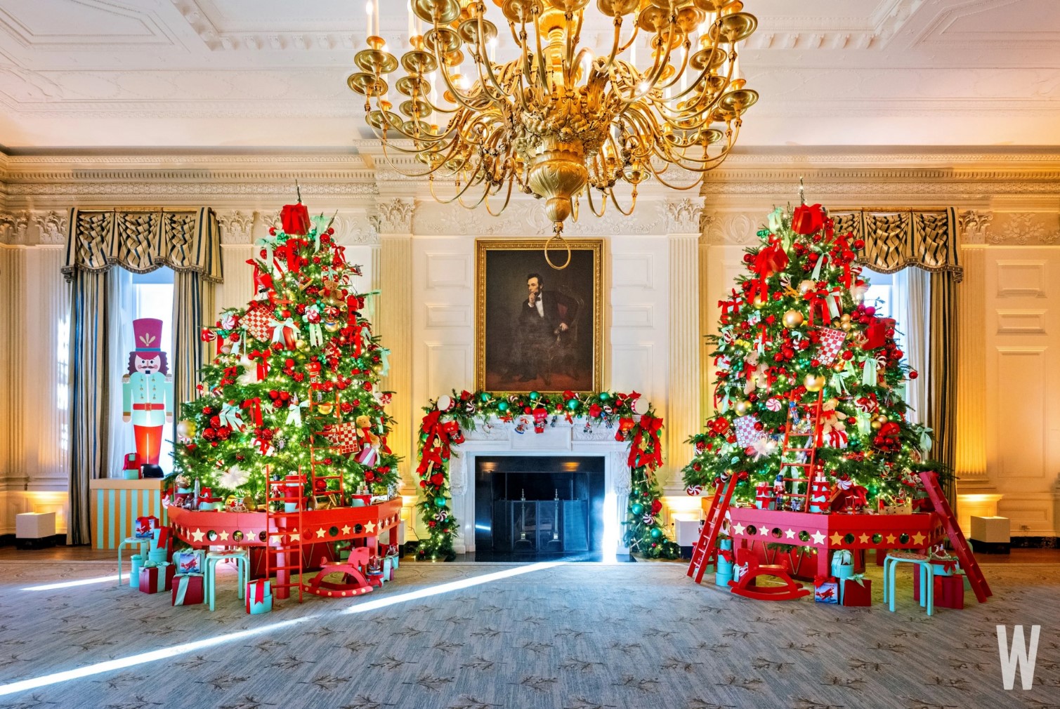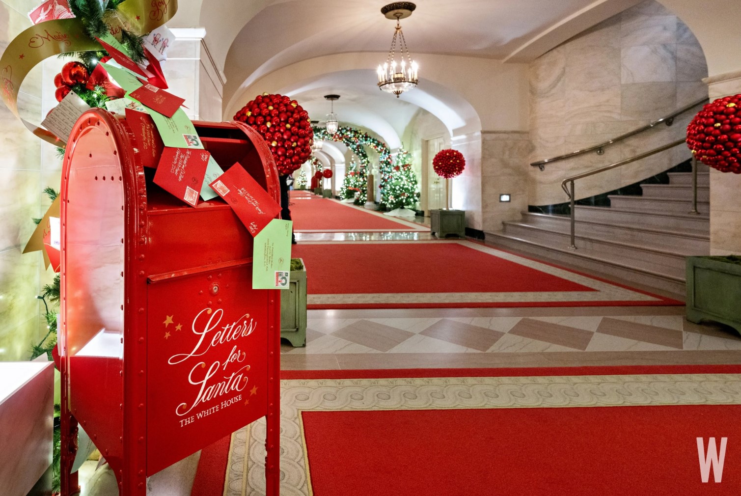 Để trang hoàng cho Nhà Trắng trong lễ Giáng sinh, hơn 300 tình nguyện viên từ khắp nước Mỹ đã làm việc cật lực vào cuối tháng 11 hoàn thành toàn bộ việc trang trí, với khoảng 4.500 m ruy băng, 33.892 đồ trang trí, 22.100 chiếc chuông và hơn 142.425 chiếc đèn. |