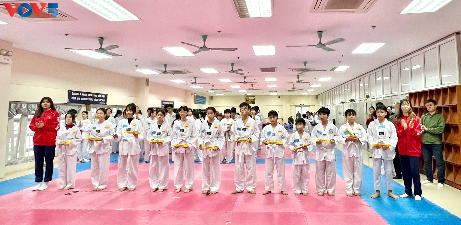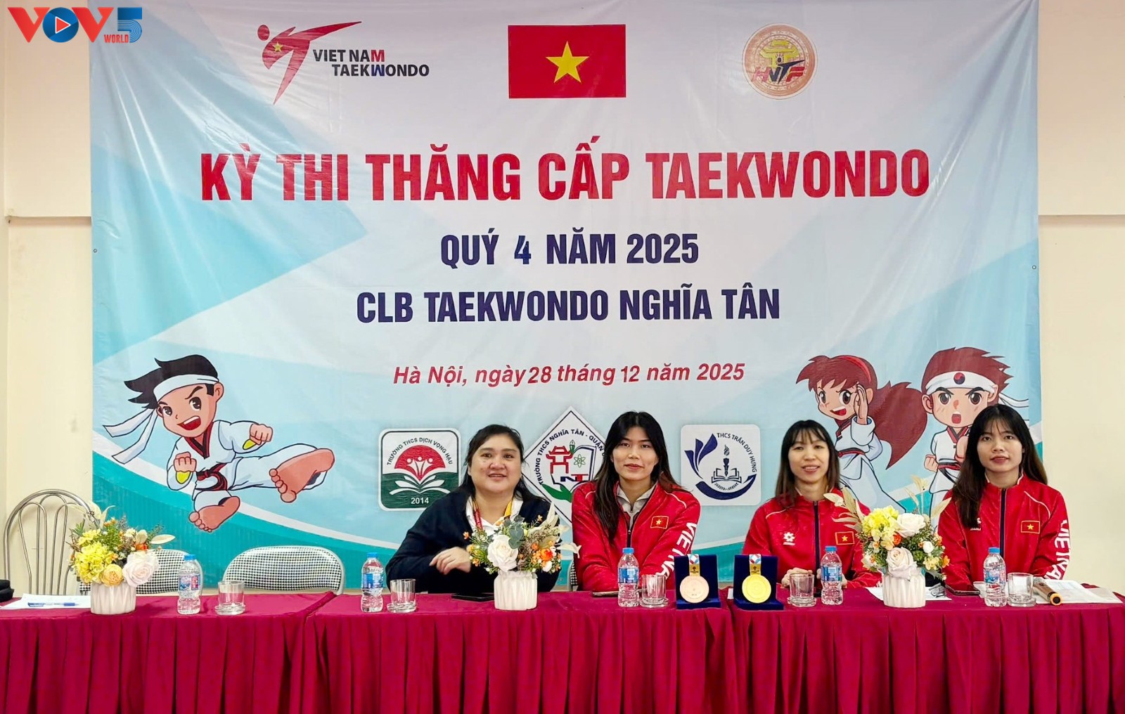 (VOV5) - Kỳ thi thăng cấp tại Câu lạc bộ (CLB) Taekwondo Nghĩa Tân (Hà Nội) vừa qua trở nên đặc biệt hơn bao giờ hết với sự xuất hiện của hai "cô gái vàng" Taekwondo Việt Nam: Bạc Thị Khiêm và Trương Thị Kim Tuyền.
