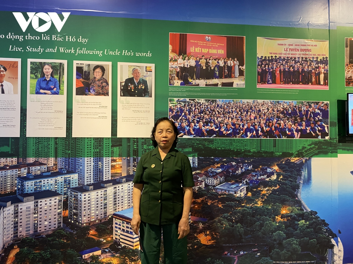 Bà Đỗ Thị Tâm, cựu chiến binh chia sẻ cảm xúc: "Tôi là chiến sỹ trực thuộc đơn vị Pháo Phòng không Mễ Trì. Đơn vị tôi lập thành tích bắn rơi một chiếc máy bay của quân địch năm 1972. Tôi đến đây và được xem những bức ảnh, cuốn băng, những tư liệu lịch sử quý giá về cuộc đời hoạt động Cách mạng của Bác Hồ. Bác đã đi xa nhưng lời răn dạy của Bác vẫn vang vọng với toàn quân, toàn dân và các thế hệ học sinh".
