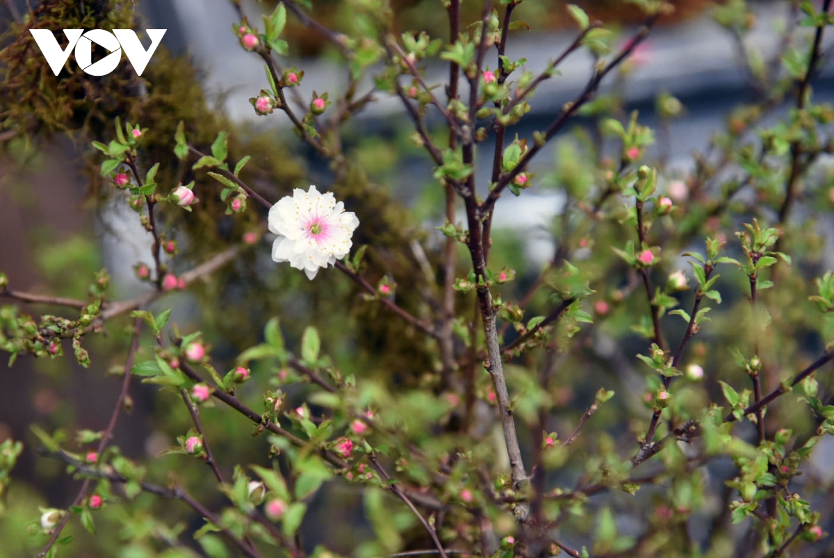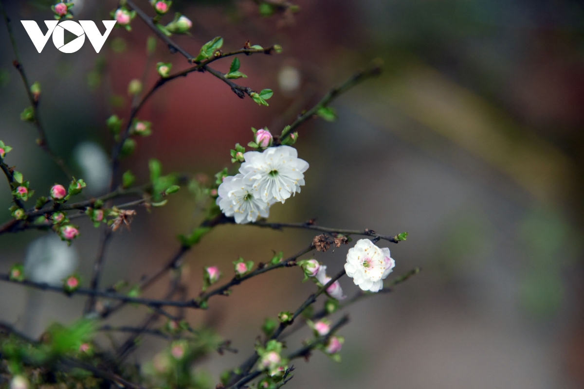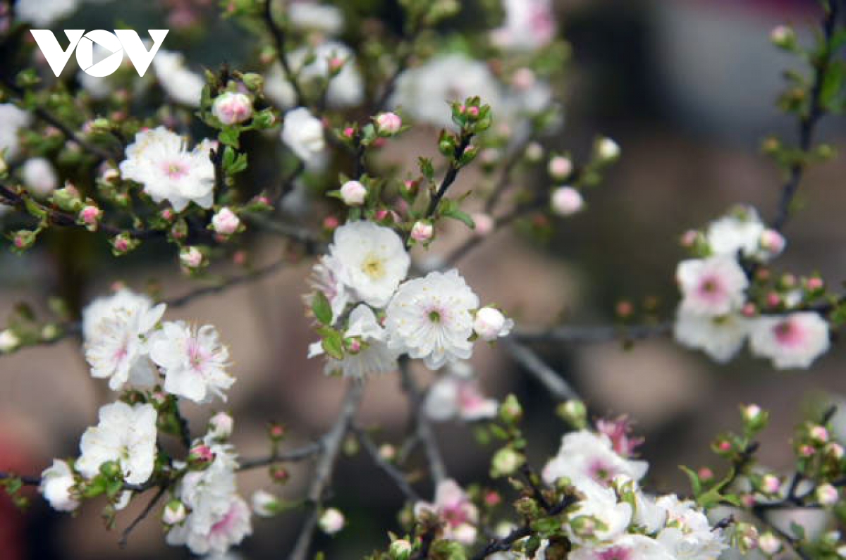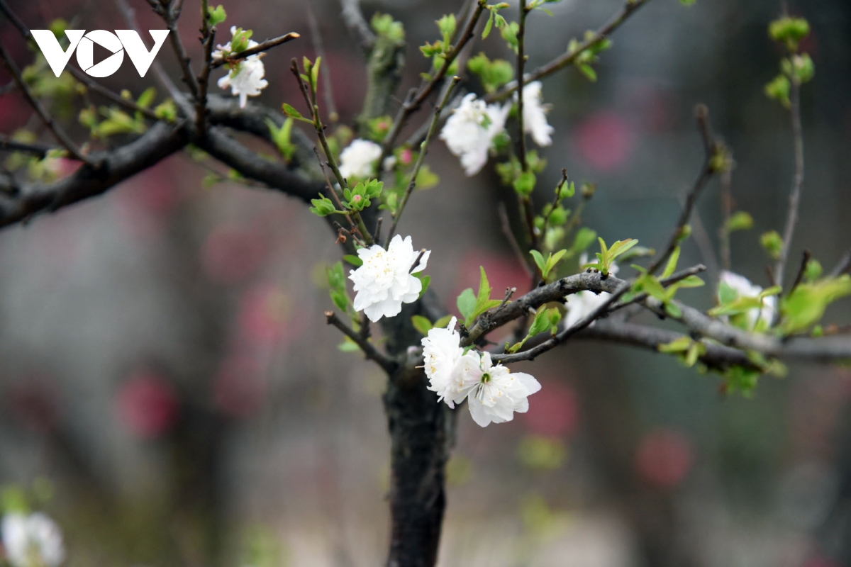 Sắc trắng tinh khiết của hoa, cùng màu chồi non xanh như ngọc mang đến sắc xuân sớm những ngày cuối năm.