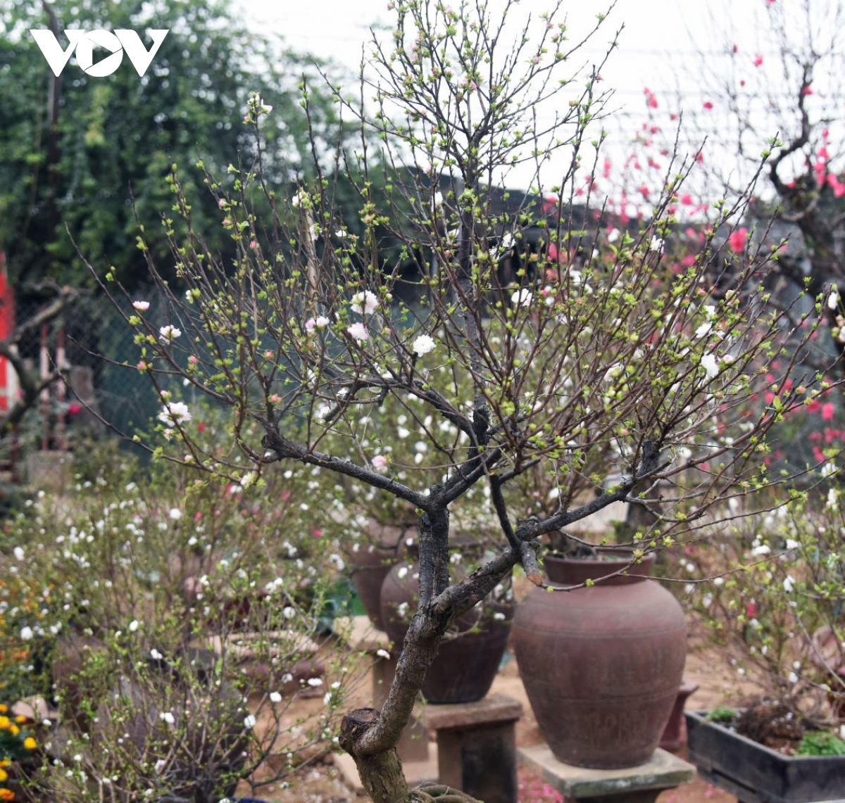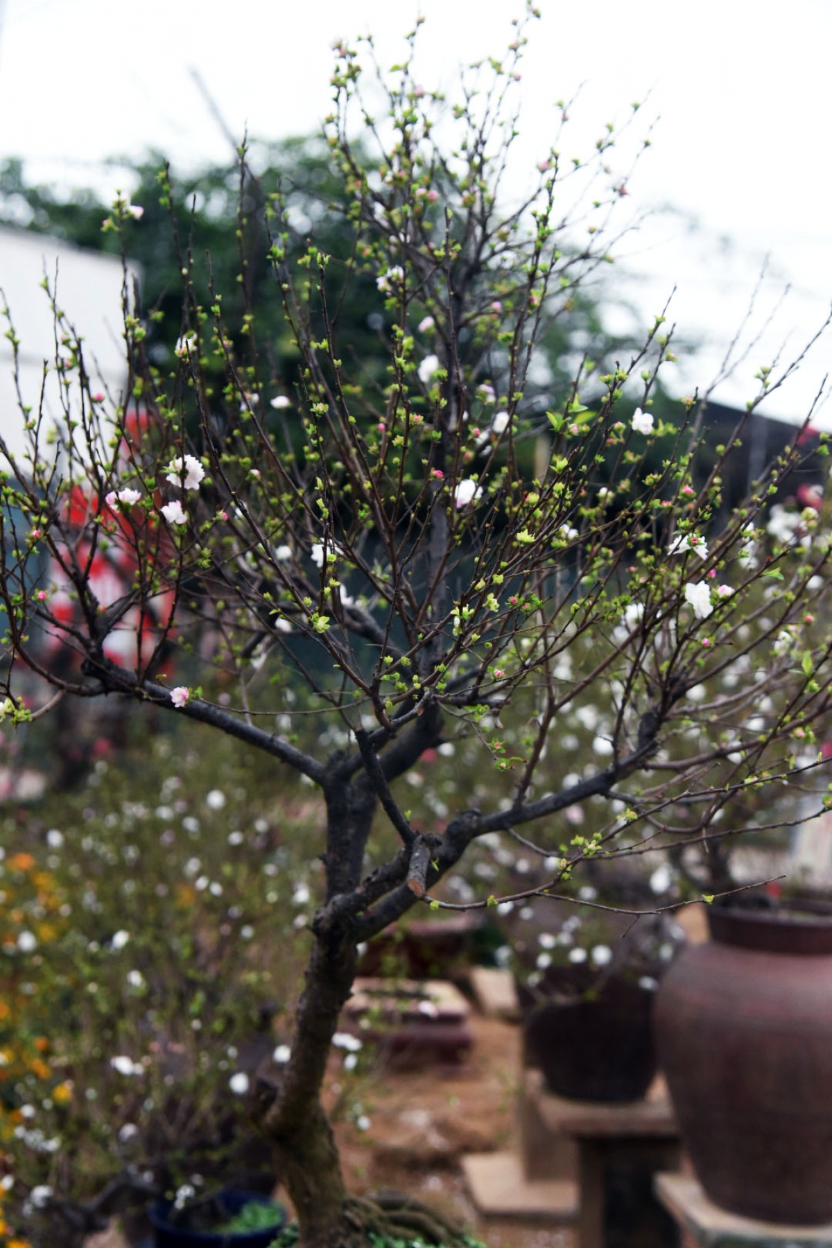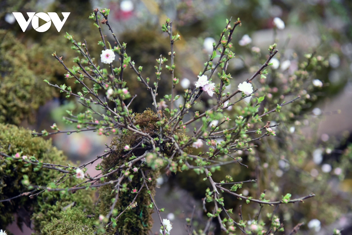 Sắc trắng tinh khiết của hoa, cùng màu chồi non xanh như ngọc mang đến sắc xuân sớm những ngày cuối năm.