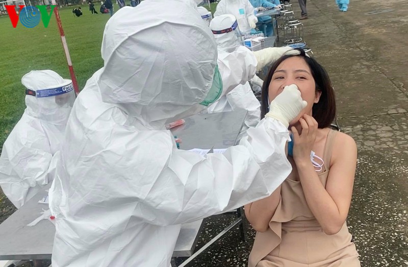 | Tiến hành lấy mẫu xét nghiệm Covid-19 đối với những người cách ly. (Ảnh: Trọng Phú) |