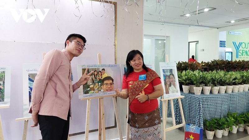 Du học sinh và gia đình chụp hình lưu niệm tại Ngày hội gia đình. Ảnh: VOV |