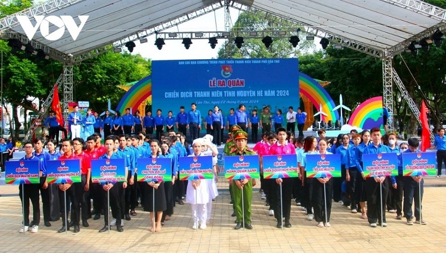 Ngày 2/6, Thành đoàn Cần Thơ phối hợp cùng Sở Tài nguyên và Môi trường và Văn phòng đại diện Tạp chí Gia đình Việt Nam tại TP. Cần Thơ tổ chức Lễ phát động hưởng ứng Ngày môi trường thế giới 5/6, Ra quân Chiến dịch Thanh niên tình nguyện hè năm 2024 và Ngày hội thiếu nhi bảo vệ môi trường năm 2024. (Thành đoàn Cần Thơ tổ chức ra quân Chiến dịch Thanh niên tình nguyện Hè với 10 đội hình chuyên, dự kiến 25.000 đoàn viên thanh niên tham gia. Ảnh: Hồng Phương/VOV) |