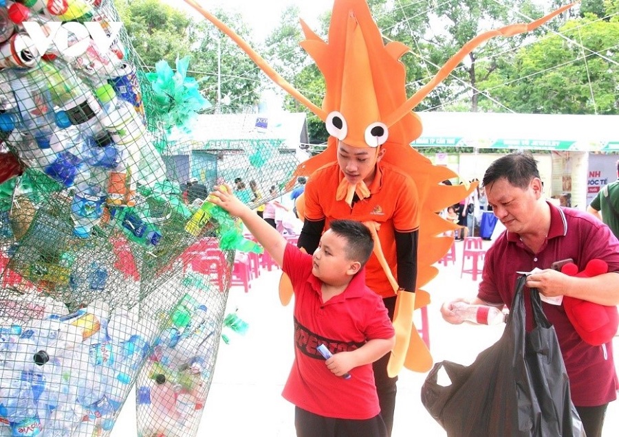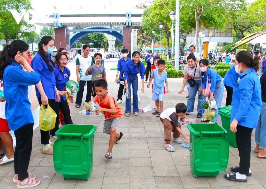 Thiếu nhi hào hứng tham gia trò chơi tại Ngày hội thiếu nhi tham gia bảo vệ môi trường. Ảnh: Hồng Phương/VOV |
