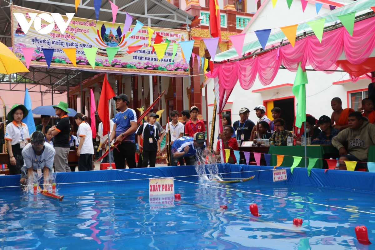 Còn tại khuôn viên chùa Tum Núp, xã An Ninh, huyện Châu Thành, cũng đã diễn ra giải đua ghe Ngo mini mừng tết dân tộc cổ truyền Chôl Chnăm Thmây năm 2024. |