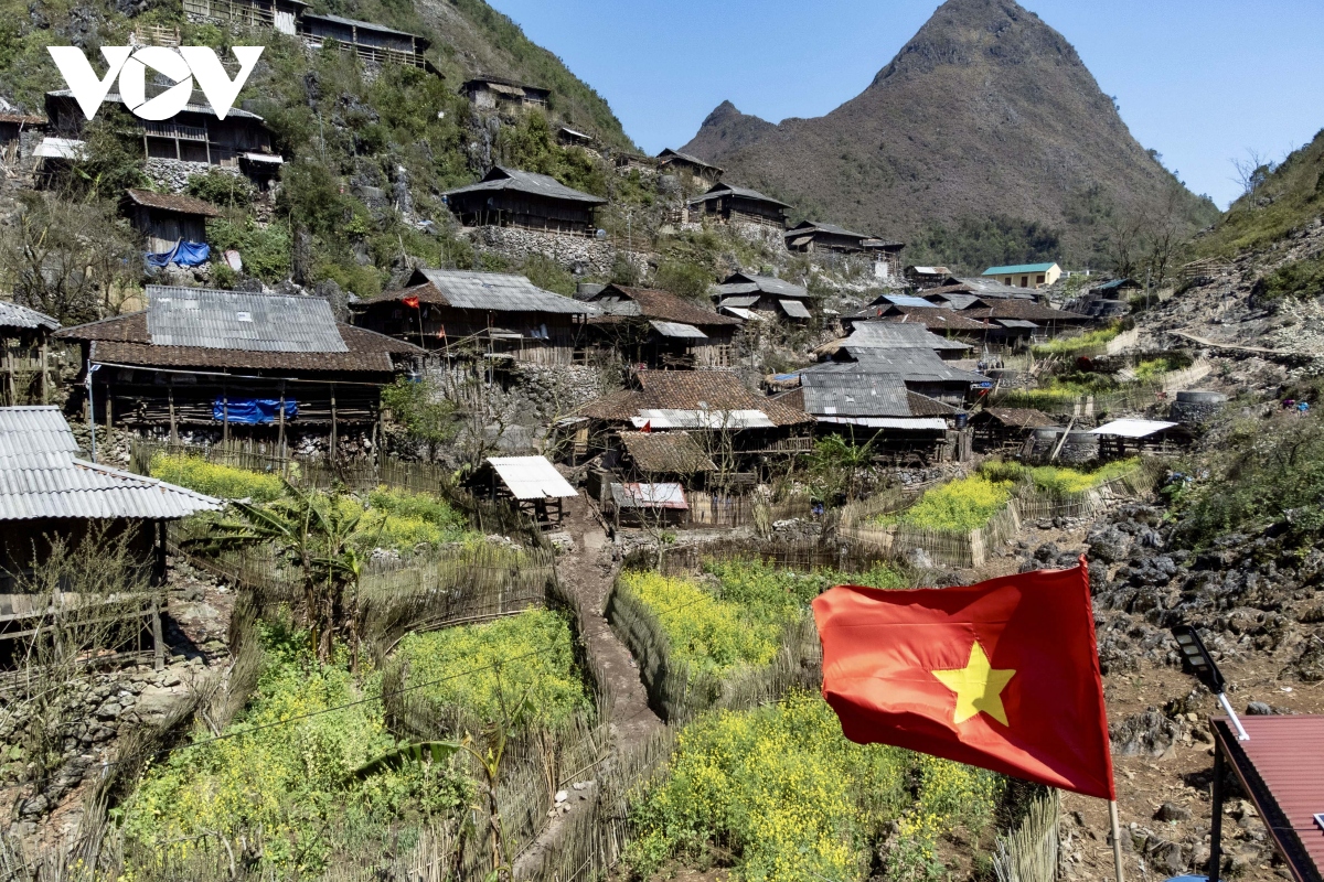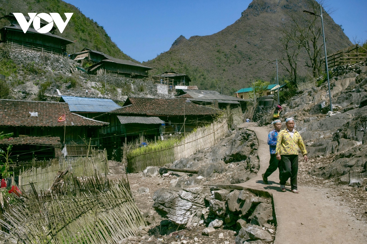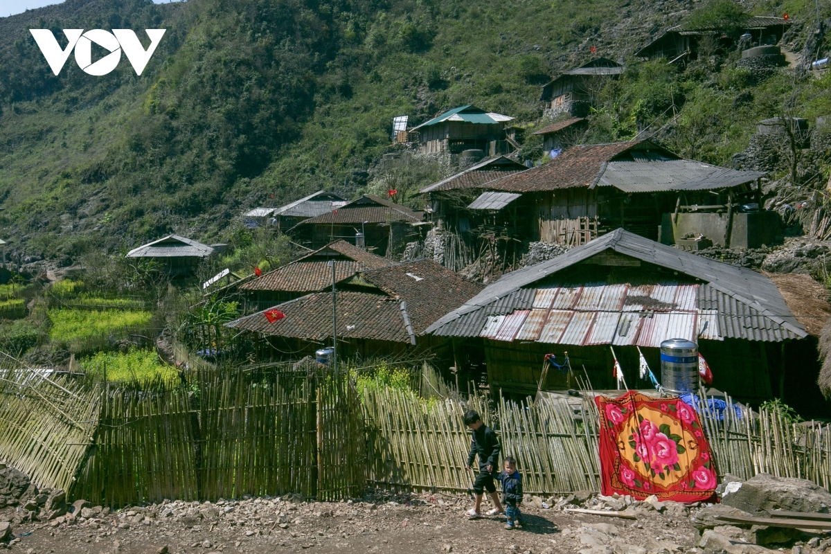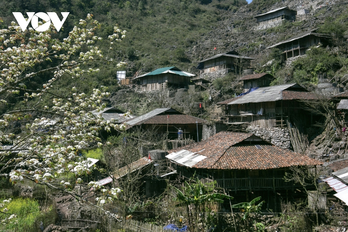 Giữa vùng đá sỏi cằn cỗi, những ngôi nhà sàn chênh vênh trên núi đá hiện ra đẹp đến ngỡ ngàng, giống như những “bông hoa” đầy sức sống và kiêu hãnh trên triền núi đá.