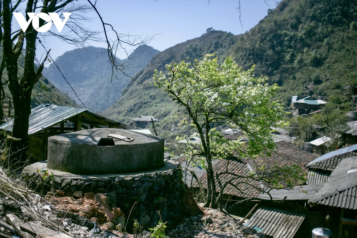 Nằm trên núi đá nên nước sinh hoạt của bà con nơi đây chủ yếu là nước mưa được dự trữ tại bể chứa.