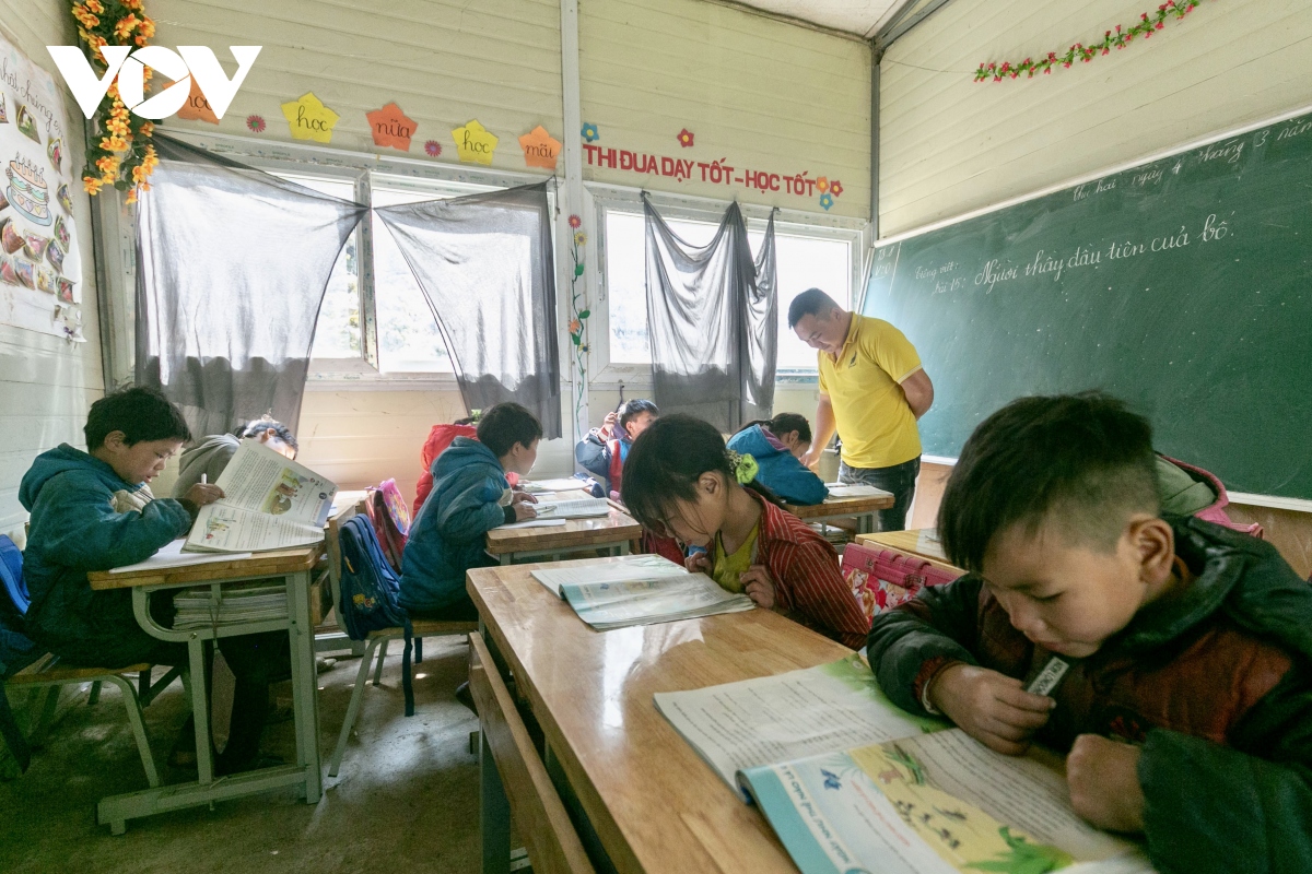 Điểm trường ngay tại xóm, hàng ngày những đứa trẻ luôn miệt mài học chữ.