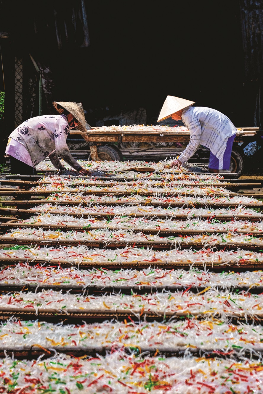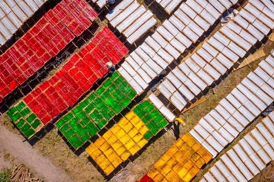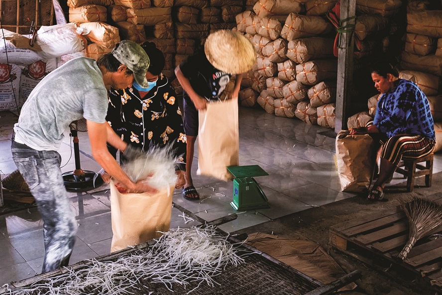 Những sợi bột khoai được phơi thêm một ngày nữa trước khi xuất xưởng. Ảnh: NAG Huỳnh Công Đồng |