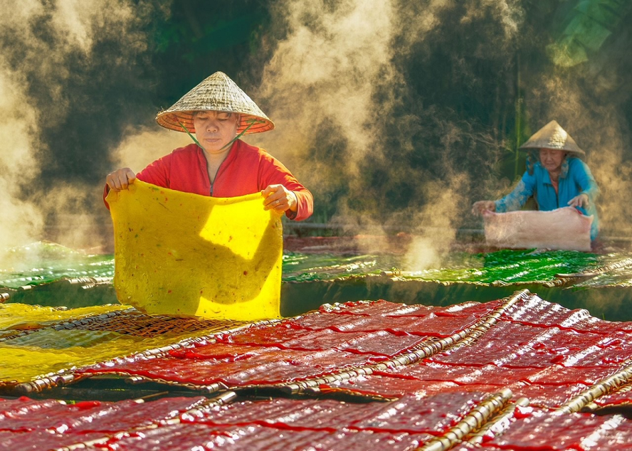 Công đoạn phơi bánh. Ảnh: NAG Huỳnh Thanh Liêm |