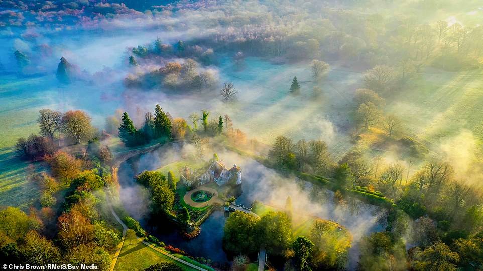 Lâu đài Scotney ở Kent trong màn sương mù cổ tích. Ảnh: Chris Brown