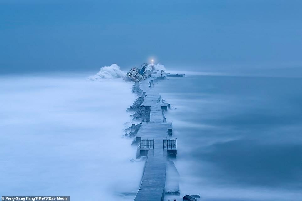 Một con tàu mắc kẹt sau một cơn bão ở Đài Loan. Ảnh: Peng-Gang Fang