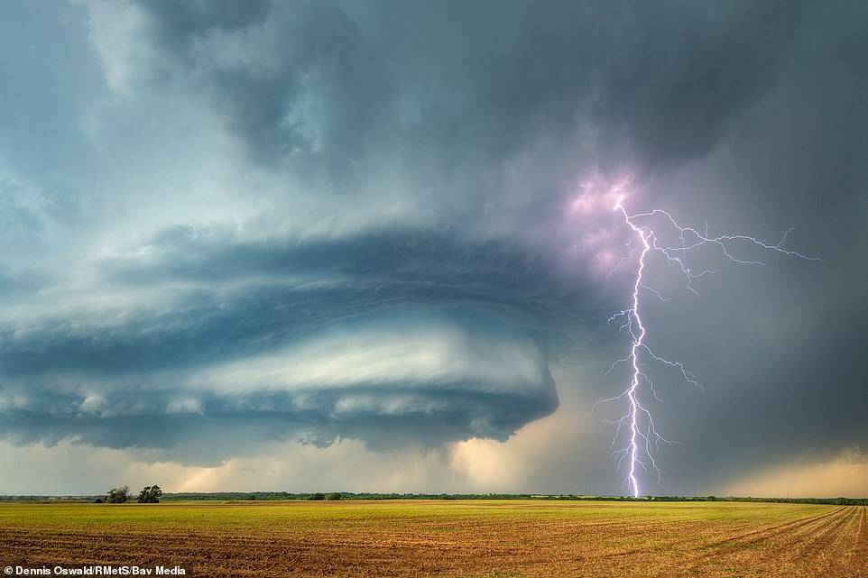 Một tia sét đánh thẳng từ trên trời xuống trong khi cơn bão đi qua Oklahoma. Ảnh: Dennis Oswald