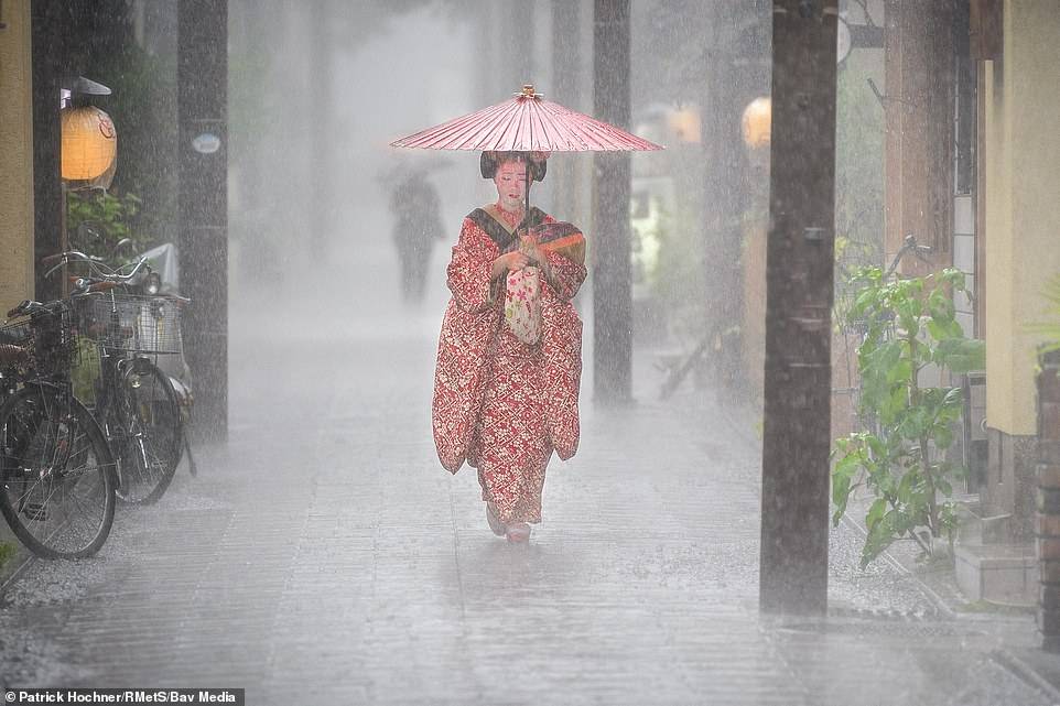 Người phụ nữ trẻ trong mưa ở Kyoto, Nhật Bản. Ảnh: Patrick Hochner