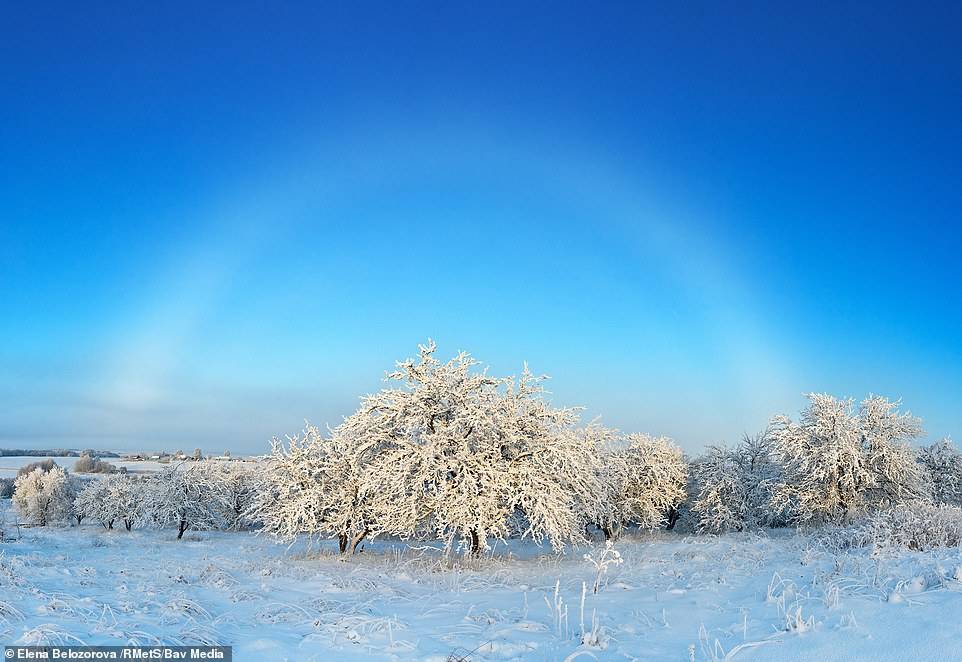 Cầu vồng trong sương mù ở Croatia. Ảnh: Elena Belozorova