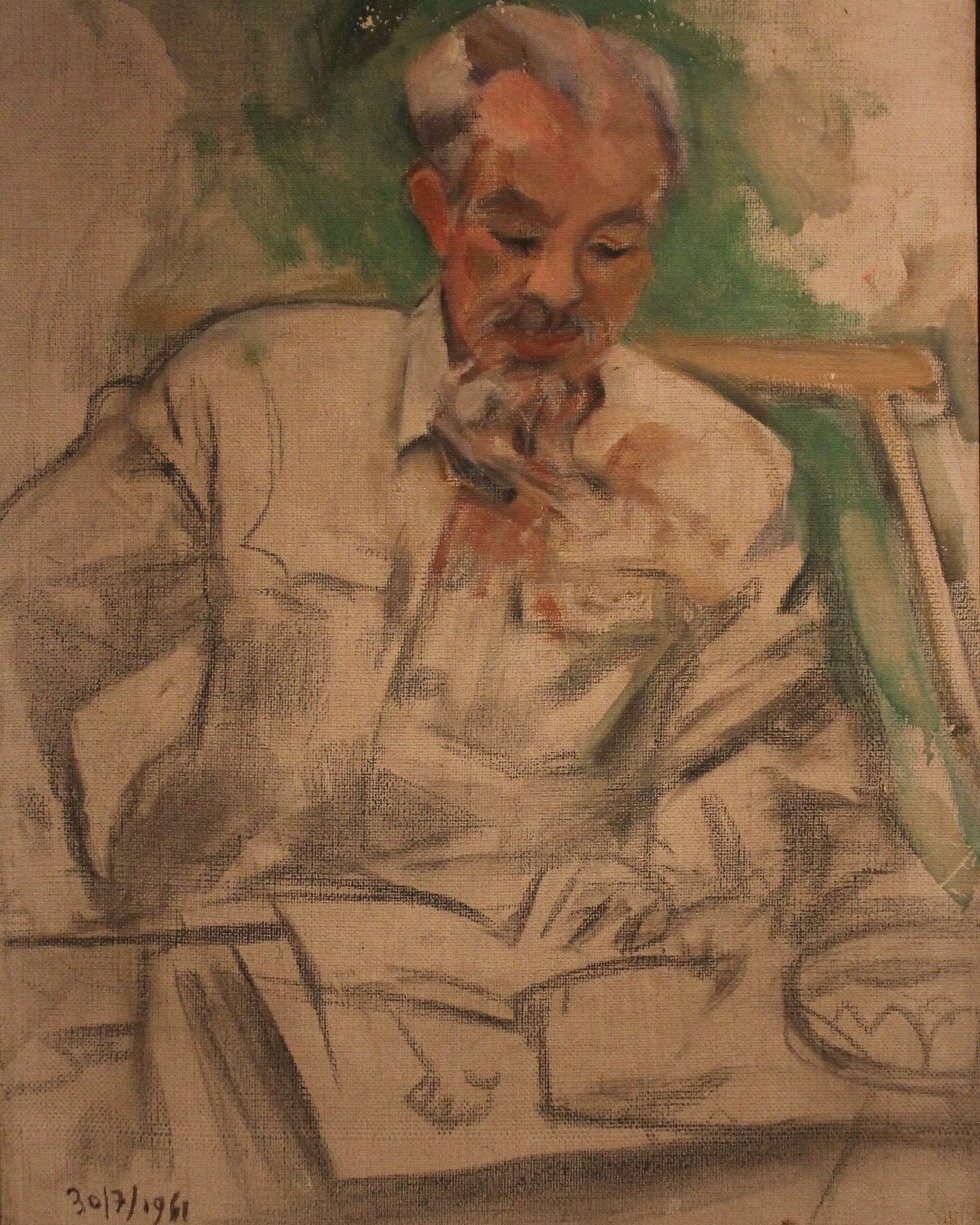 Chân dung Bác - tranh sơn dầu năm 1961 của họa sĩ Trần Văn Cẩn. |