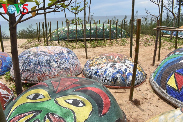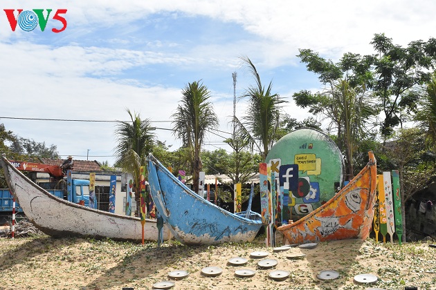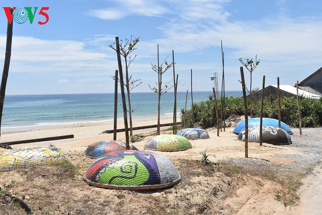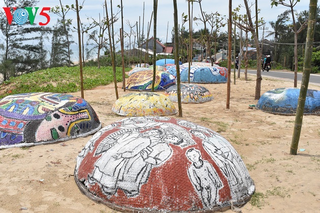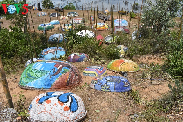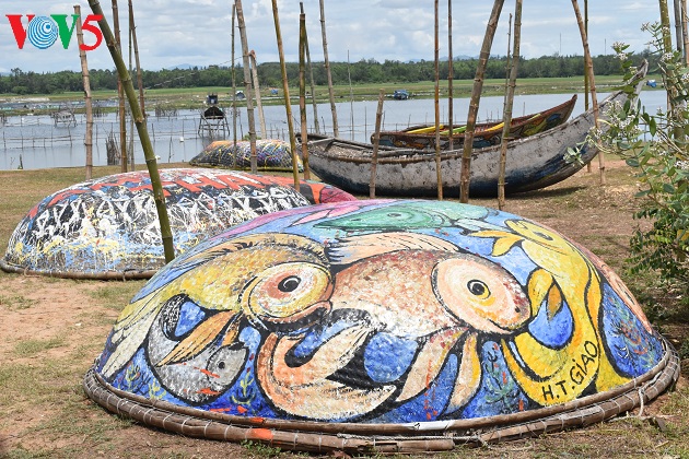 (VOV5) - Mùa hè này đến với biển Tam Thanh, thành phố Tam Kỳ, Quảng Nam du khách không chỉ hòa mình vào làn nước trong xanh của biển mà còn được chiêm ngưỡng những tác phẩm vô cùng độc đáo tại làng bích họa Trung Thanh. Hơn 100 chiếc thuyền thúng cũ, hỏng hoặc đang được sử dụng của ngư dân nhưng qua bàn tay của các họa sĩ trở đã thành những tác phẩm hội họa sinh động, đầy màu sắc được sắp đặt hai bên đường làng bích họa Tam Thanh, tạo thành con đường thuyền thúng 'độc nhất vô nhị' tại Việt Nam.