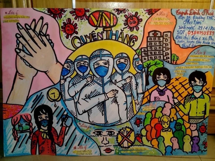 Bức tranh “Quyết thắng COVID-19” của em Nguyễn Ngọc Phúc, Thọ Xuân, Thanh Hoá. |