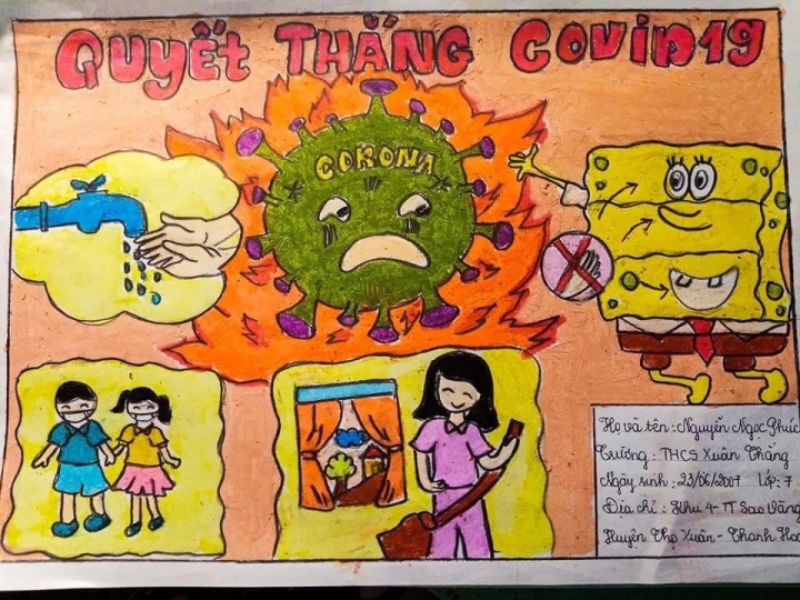 "Toàn dân tích cực phòng chống nCoV” – tranh vẽ của học sinh Trường tiểu học Bắc Hồng, Hồng Lĩnh, Hà Tĩnh.