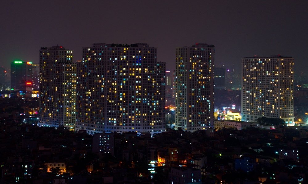 | Các khu đô thị mới như Royal City, Time City, Stars Lake... với kiến trúc hiện đại, tích hợp nhiều trung tâm thương mại, khu vui chơi cũng là nét đẹp mới, trẻ trung và hiện đại của thủ đô ngàn năm văn hiến. Ảnh: Ánh sáng từ những căn hộ chung cư thuộc khu đô thị Royal City. |