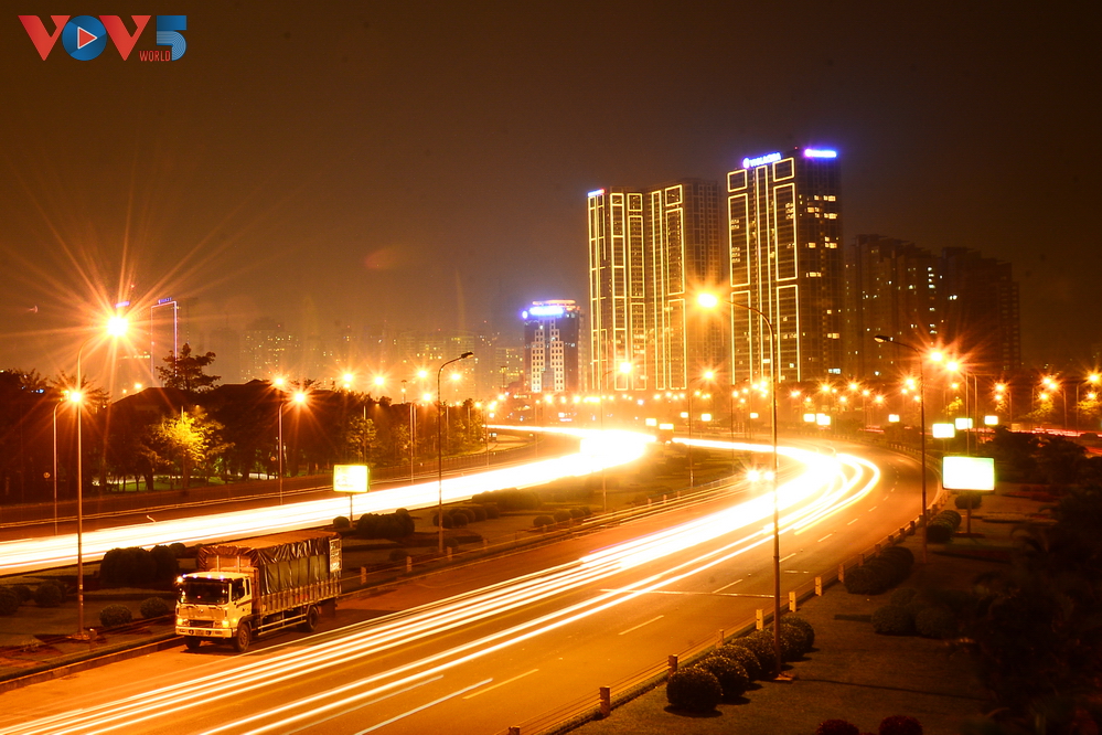 Từ đại lộ Thăng Long đi vào trung tâm thành phố, du khách sẽ thấy được những tòa nhà cao tầng với ánh sáng lung linh, tràn đầy hơi thở hiện đại. Ảnh: Khu đô thị Trung Hòa nhìn từ hướng đại lộ thăng Long. |
