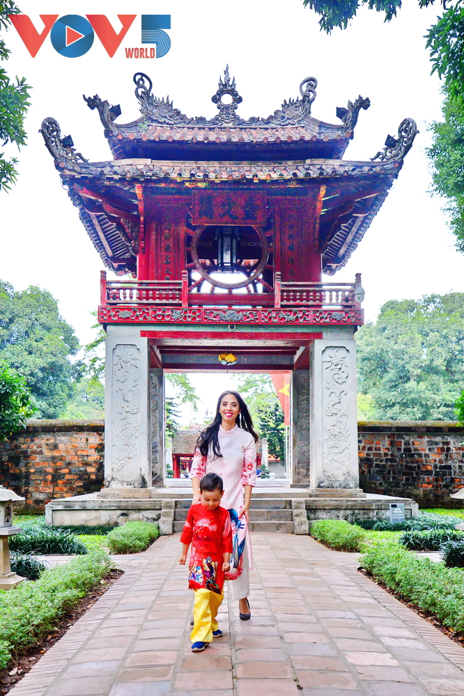 | Một biểu tượng khác của Hà Nội, đó là Khuê Văn Các, thuộc khu di tích Văn Miếu Quốc Tử Giám. Đây là một lầu vuông tám mái, bao gồm bốn mái thượng và bốn mái hạ, cao gần chín thước được xây dựng vào năm 1805. Kiểu dáng kiến trúc Khuê Văn Các rất hài hòa và độc đáo. Tầng dưới là 4 trụ gạch vuông, mỗi cạnh của trụ có chiều dài một mét và trên các mặt trụ đều có chạm trổ các hoa văn rất tinh vi và sắc sảo. Tầng trên là kiến trúc gỗ sơn son thếp vàng trừ mái lợp và những phần trang trí góc mái hoặc trên bờ nóc là bằng chất liệu đất nung hoặc vôi cát có độ bền cao.. |