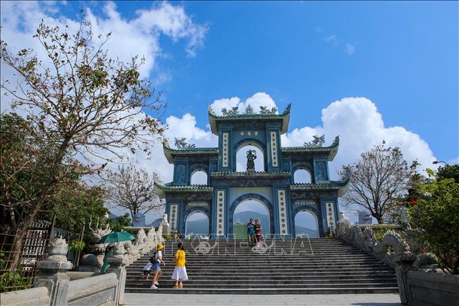 Cổng Tam Quan đường dẫn vào Quần thể Chùa Linh Ứng-Bãi Bụt. Ảnh: TTXVN |
