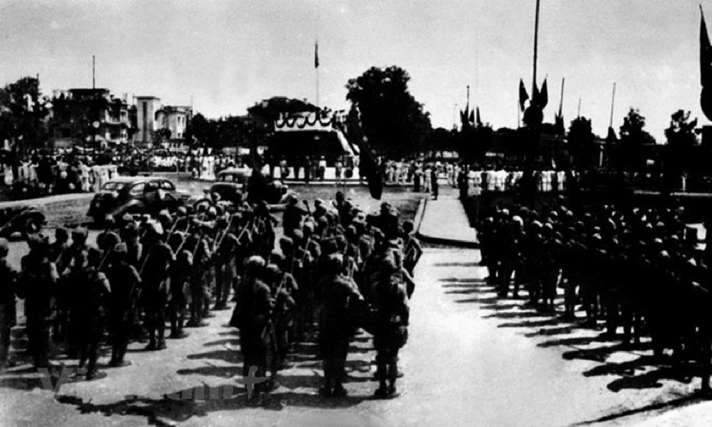Ngày 2/9/1945, tại Quảng trường Ba Đình, Chủ tịch Hồ Chí Minh thay mặt Chính phủ lâm thời, đọc bản Tuyên ngôn độc lập khai sinh ra nước Việt Nam Dân chủ Cộng hòa, đánh dấu Cách mạng tháng Tám thắng lợi hoàn toàn. Ảnh tư liệu: TTXVN