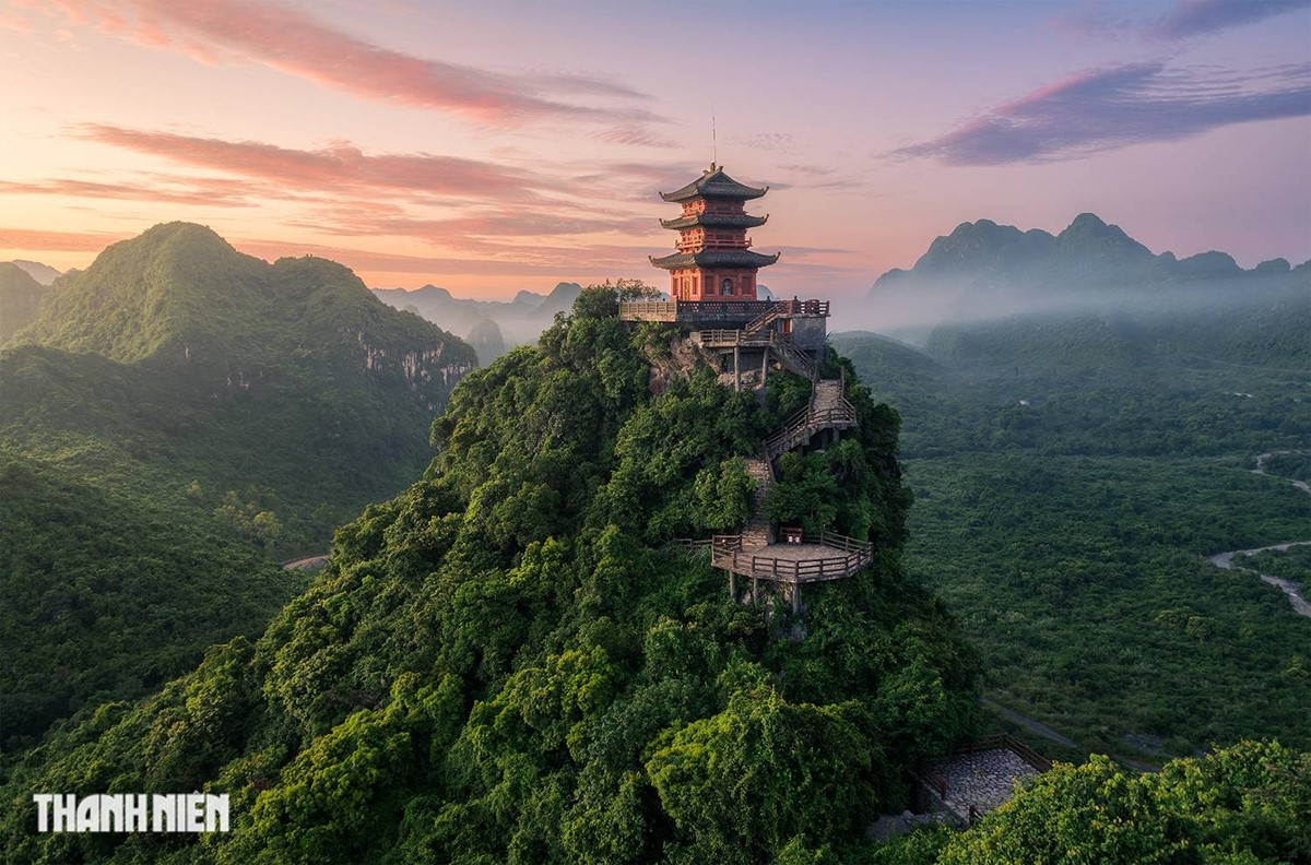 Hà Nam nhận giải kép là “Điểm đến văn hóa khu vực hàng đầu châu Á và Việt Nam”. Năm nay là năm đầu Hà Nam đoạt giải WTA. (Bình minh tại chùa Ngọc trên đỉnh núi Thất Tinh thuộc Trung tâm Văn hóa Phật giáo Tam Chúc, Kim Bảng, Hà Nam. Ảnh: Nguyễn Gia Bảo/thanhnien.vn) |