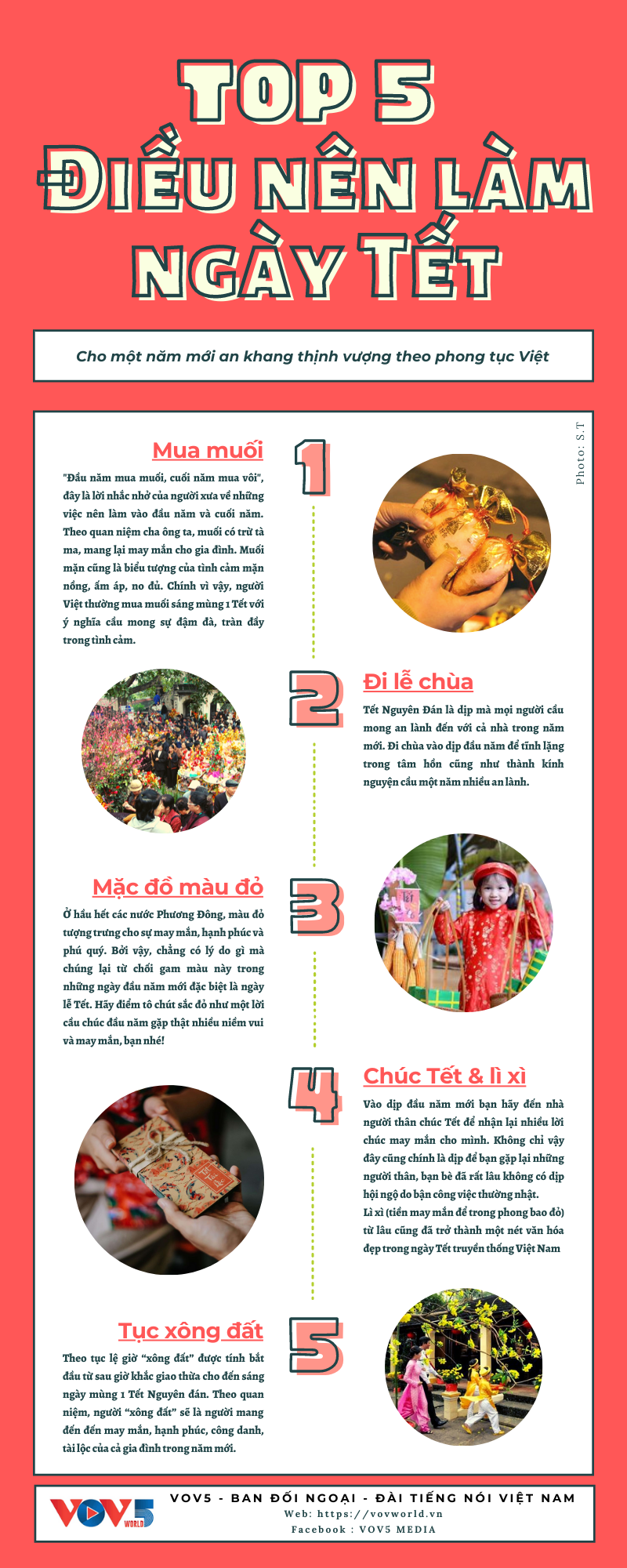(VOV5) -Theo quan niệm dân gian xưa, chúng ta nên làm những gì vào ngày Tết để cầu mong một năm mới an khang và thịnh vượng ? Hãy cùng VOV5 điểm qua 5 điều mang lại may mắn sau đây nhé!