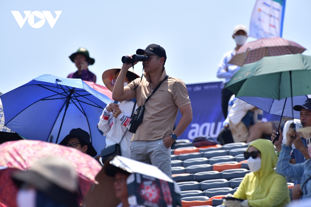 Thời tiết nắng nóng nhưng người dân và du khách vẫn hào hứng xem đua mô tô nước quốc tế diễn ra tại đầm Thị Nại. Ảnh: Thanh Thắng/VOV |