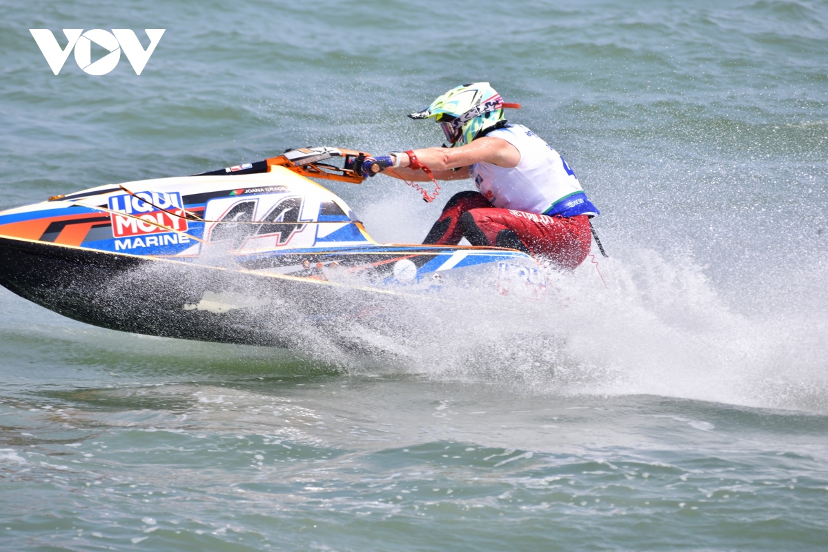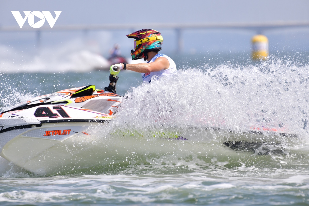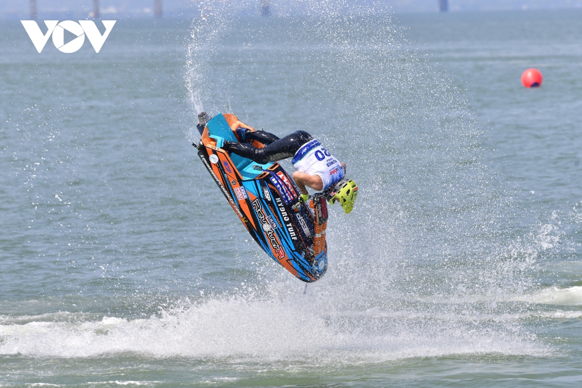 Mỗi tay đua mô tô nước hàng đầu thế giới đã có phần trình diễn ấn tượng, điêu luyện đem đến nhiều hào hứng cho người xem. Ảnh: Thanh Thắng/VOV |