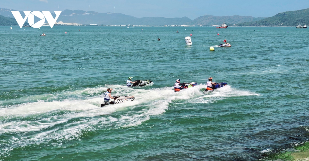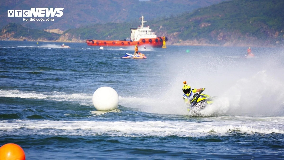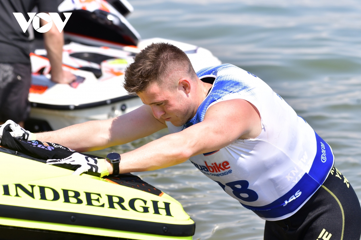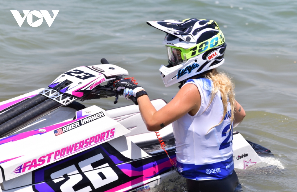 Mỗi tay đua mô tô nước hàng đầu thế giới đã có phần trình diễn ấn tượng, điêu luyện đem đến nhiều hào hứng cho người xem. Ảnh: Thanh Thắng/VOV |