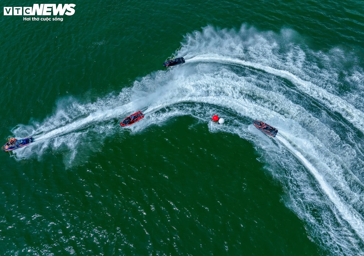 Các tay đua đã thể hiện kỹ thuật cao từ đường đua thẳng, góc cua gắt trên mặt nước, tạo nên màn đua tốc độ vô cùng mãn nhãn. Ảnh: Thanh Thắng/VOV |
