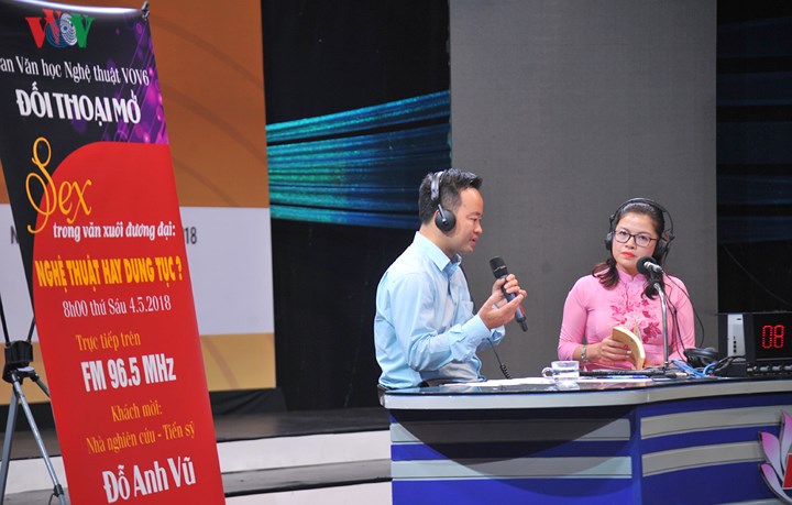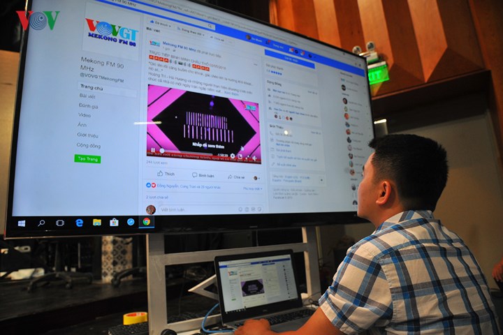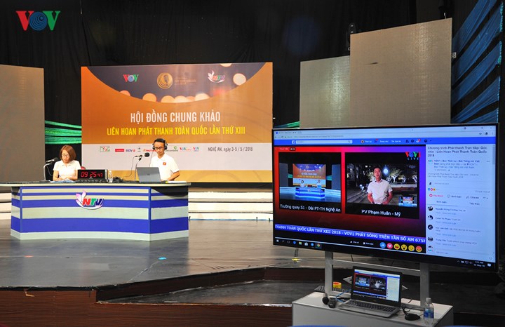 | Các tác phẩm còn ứng dụng hiệu quả tính năng trực tiếp của mạng xã hội khi được livestream trên Facebook. Trong ảnh: Chương trình dự thi của VOV1. |