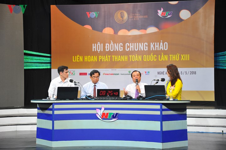 | Tại Liên hoan Phát thanh toàn quốc lần thứ XIII - năm 2018 đang diễn ra ở TP. Vinh (Nghệ An), Hội đồng chung khảo thi Phát thanh trực tiếp đã làm việc liên tục trong 3 ngày từ 2 - 4/5 để lựa chọn ra những tác phẩm xuất sắc nhất. |