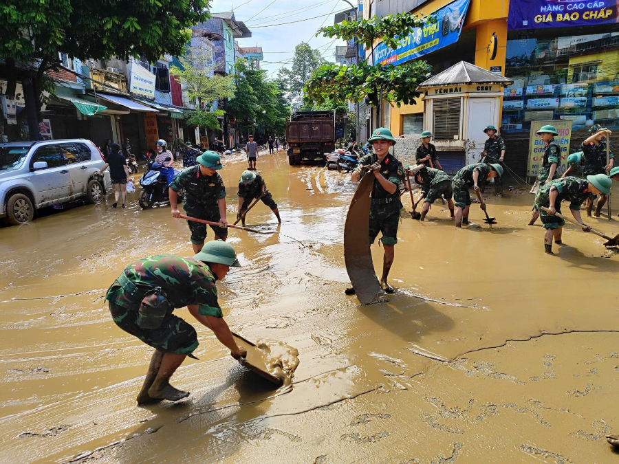 Bộ đội Sư đoàn 316 (Quân khu 2) nỗ lực cùng nhân dân phường Hồng Hà, TP. Yên Bái, dọn lũ. Ảnh: Tỉnh đoàn Yên Bái |