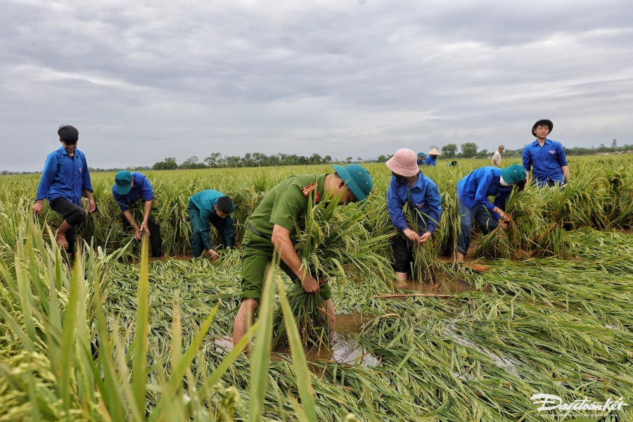 Do ảnh hưởng trực tiếp của cơn bão số 3, hơn 170 ha lúa của người dân xã Liên Mạc (huyện Mê Linh, Hà Nội) đổ rạp, ngập sâu trong nước, có nguy cơ bị hư hỏng trước ngày thu hoạch. Để cứu vãn hàng trăm ha lúa sắp đến ngày thu hoạch, UBND xã Liên Mạc đã huy động lực lượng Công an xã, dân quân và hơn 50 đoàn viên thanh niên giúp đỡ người dân buộc lúa. Ảnh: daidoanket.vn |