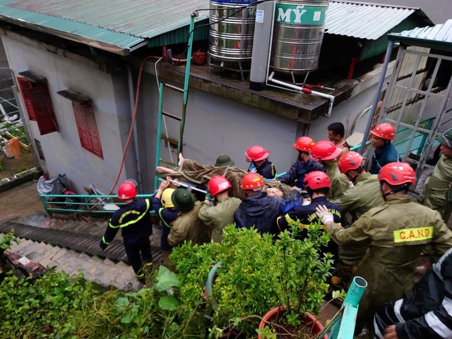 Công an tỉnh Quảng Ninh tổ chức cứu hộ thành công cháu bé bị vùi lấp do sạt lở đất vì mưa lớn kéo dài sau bão tại TP. Hạ Long. Ảnh: Công an tỉnh Quảng Ninh |