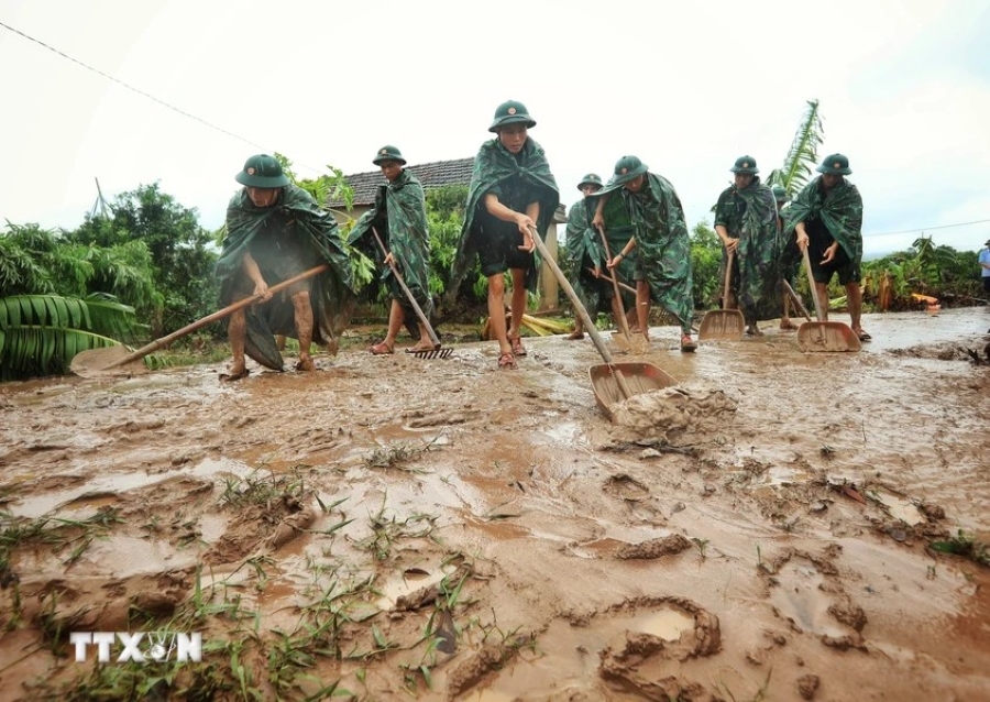Vào ngày 10/9 đã xảy ra lũ ống, lũ quét đặc biệt nghiêm trọng, vùi lấp toàn bộ thôn Làng Nủ, tỉnh Lào Cai, khiến nhiều người thiệt mạng và mất tích. Từ ngày 11/9, hàng trăm cán bộ, chiến sĩ quân đội, công an đã hành quân đến Làng Nủ. Ảnh: VOV |