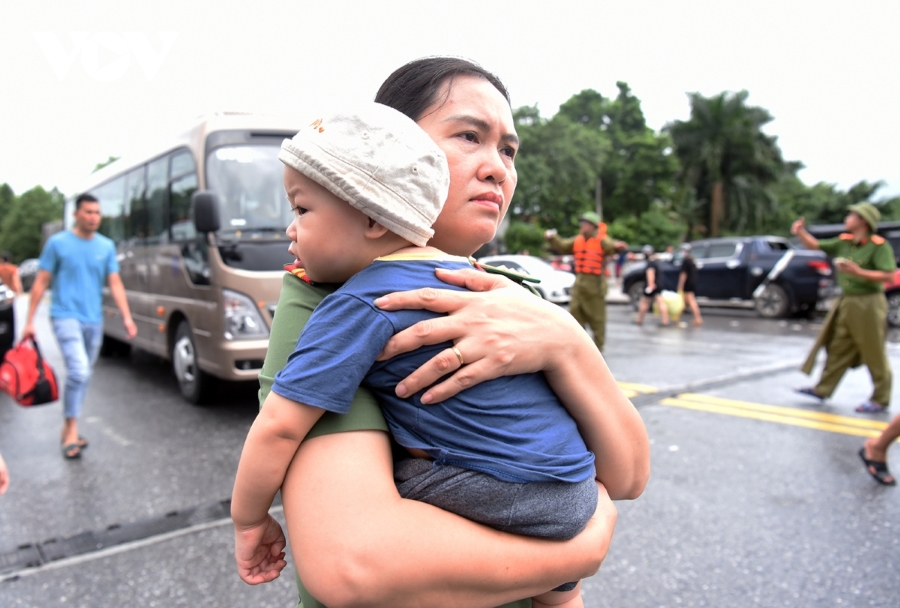 Công an thị xã Việt Yên, Bắc Giang hỗ trợ người dân sơ tán đến nơi an toàn. Ảnh: CTV/VOV |