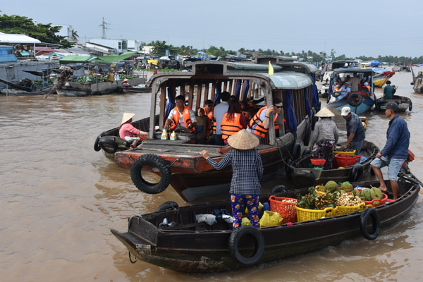 Đoàn thanh niên kiều bào thăm chợ nổi Cái Bè