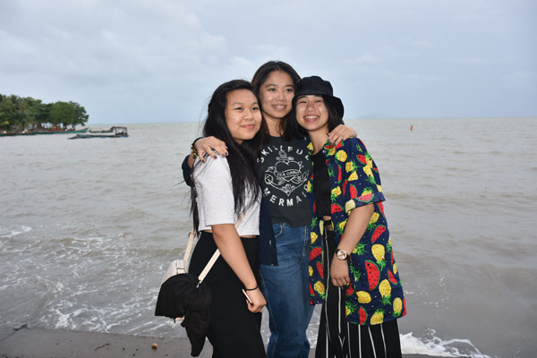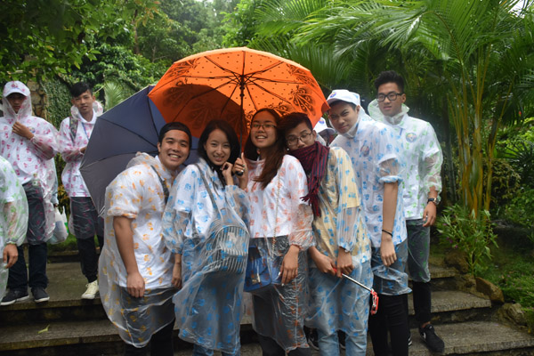 Các thanh niên kiều bào chụp ảnh lưu niệm tại Bến Nhà Rồng